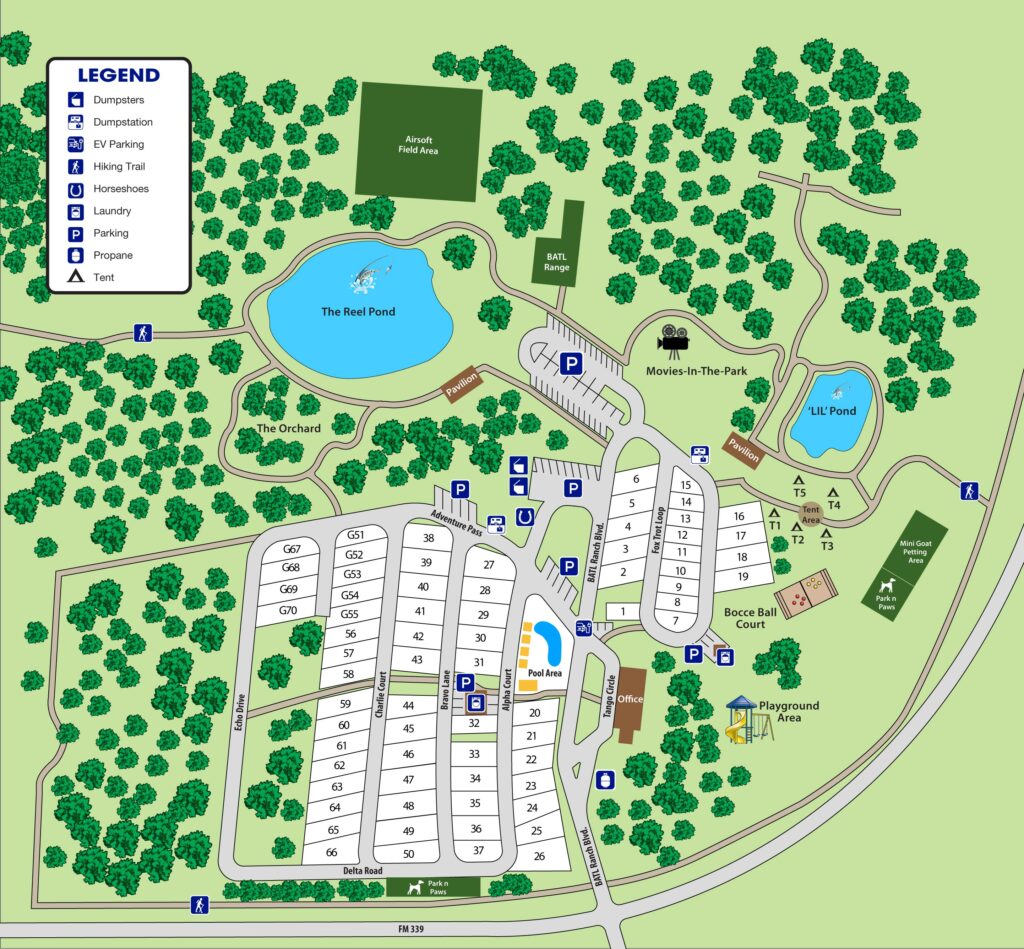 Great Rv park. Plenty of amenities. Plenty of trees for shade. Greg and his family run a no nonsense Rv park. Lots of families decide to stay here while having homes built. Propane on site. Pool and hot tub. You will love it here. Pond for fishing. Allows a dog fence. Has a dog park. Just an overall great place. Dw